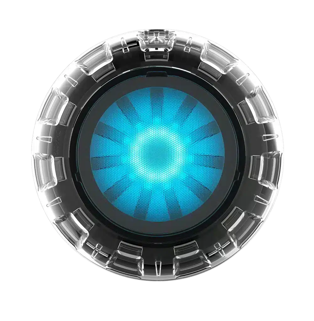 Compatible with the popular iRIS lighting controller, this light also features an IPX8-rated Quick Connect plug for a secure, waterproof connection. It fits neatly with a 130mm diameter and comes in a range of rim colour options – Transparent, White, or Light Grey – to suit your pool’s style.